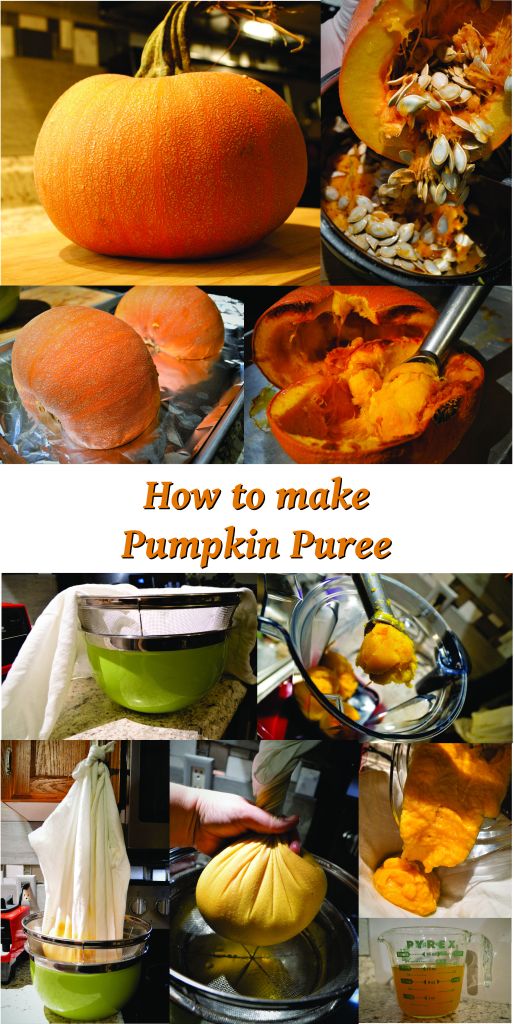 6.) The puree is ready once it can easily retain its shape when squeezed or molded. The volume will be reduced by approximately half. (I was able to drain almost 1.5 cups of liquid from each whole pumpkin, leaving abou.) Pumpkin puree cannot be safely canned, even under pressure, due to its density. However, it can be frozen for several months or stored under refrigeration for up to a week.