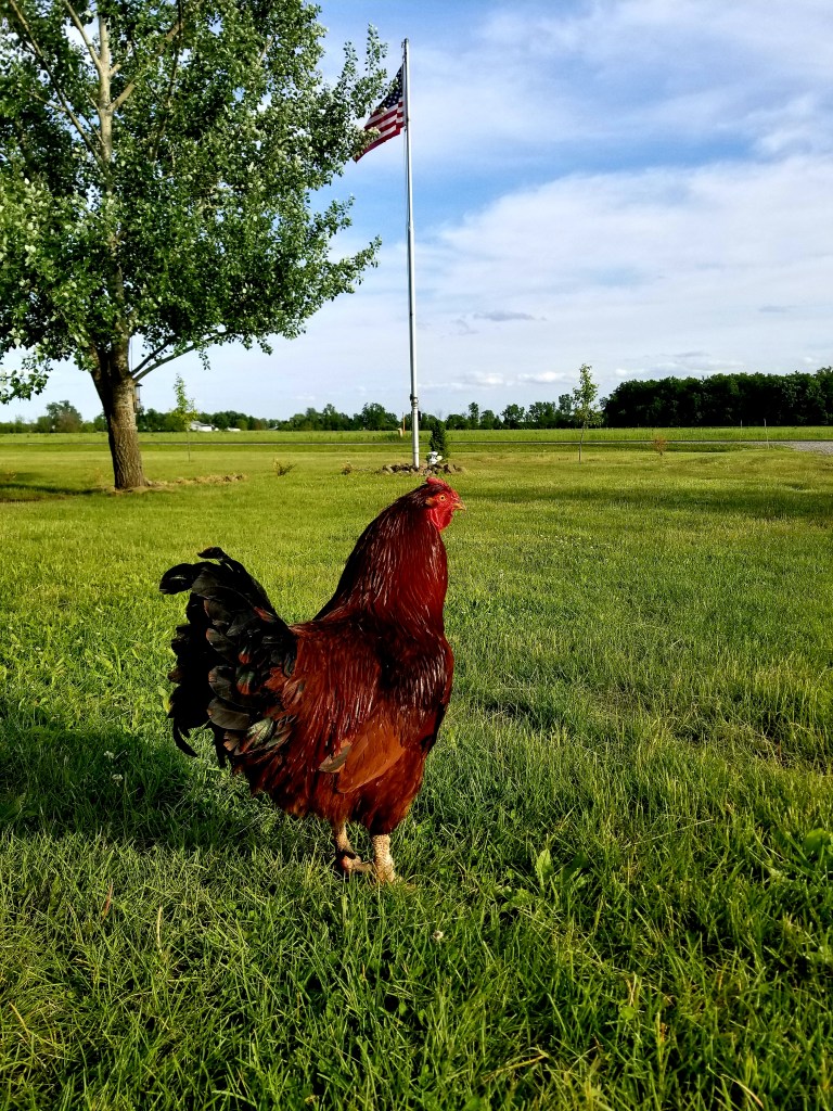 Roger has proven to be a excellent protector and companion for our hens. He likes being petted on occasion, and he’s the only rooster I have ever trusted enough to turn my back on and not have to worry about getting flogged. (As a small child, I was viciously attacked by one of our roosters. My mother made the determination at that moment that he would better serve us on the dinner table, so we had a hearty pot of chicken and dumplings for supper that night.) Roger’s body condition has greatly improved since his first day here on our homestead. And although he might be missing a couple digits, he has truly turned out to be one top-notch guy!