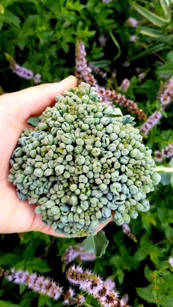 Previously in this series, we discussed the planting of our brassicas (broccoli, cauliflower, and cabbage) and the Mother’s Day Freeze that could’ve ended in disaster. Although that potential crisis was averted, we were dealt another nasty set of circumstances: continually wet soil followed by hotter than ideal Spring weather. Neither of these conditions bode well for most brassicas, and ours were greatly stunted. As the bumper cole crop I had been hoping for was beginning to become more of a pipe dream than a reality, something finally happened. One, just one little gorgeous crown of broccoli appeared almost overnight. In August, nonetheless. As the days dragged on, a few more spindly heads presented themselves, several of those being rapidly overtaken by cabbage moth larvae. I salvaged as much as I could, but we only ate about 3 small heads and a few offshoots in total. Most of which I used to make one pot of broccoli cheddar soup. Not exactly a bountiful harvest considering we’d planted almost 30 broccoli plants between the Waltham (pictured below) and the Purple Sprouting variety. Speaking of the Purple Sprouting broccoli… it produced NOTHING… nothing except enormously thick stalks and huge leaves. A total disappointment.