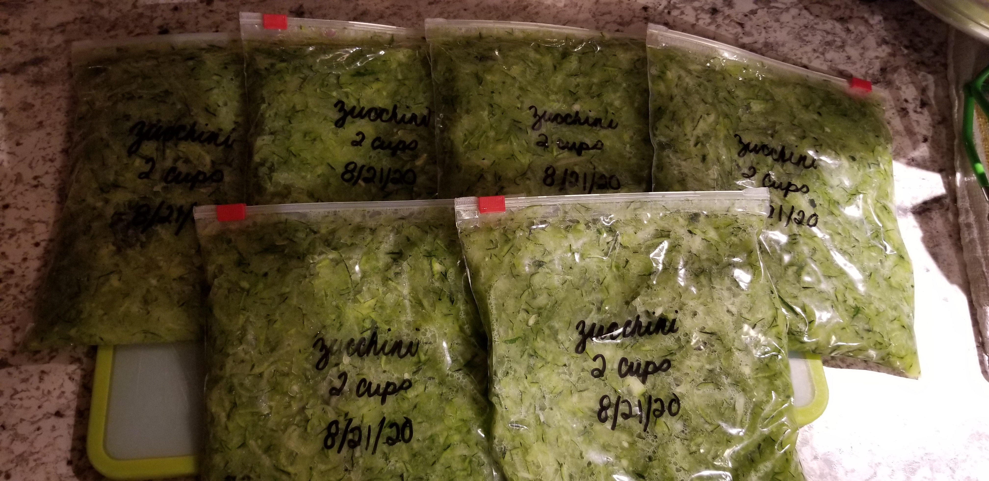 Another heavy hitter in the 2020 garden was, as always, zucchini. I have so much grated zucchini in my freezer, I may not even sow any in 2021. I have tried freezing zucchini medallions in the past, but they get soggy. I’ve found if I shred the zukes and freeze them for use in meatloaf, breads, and brownies, the texture and consistency are just about right for those applications.
