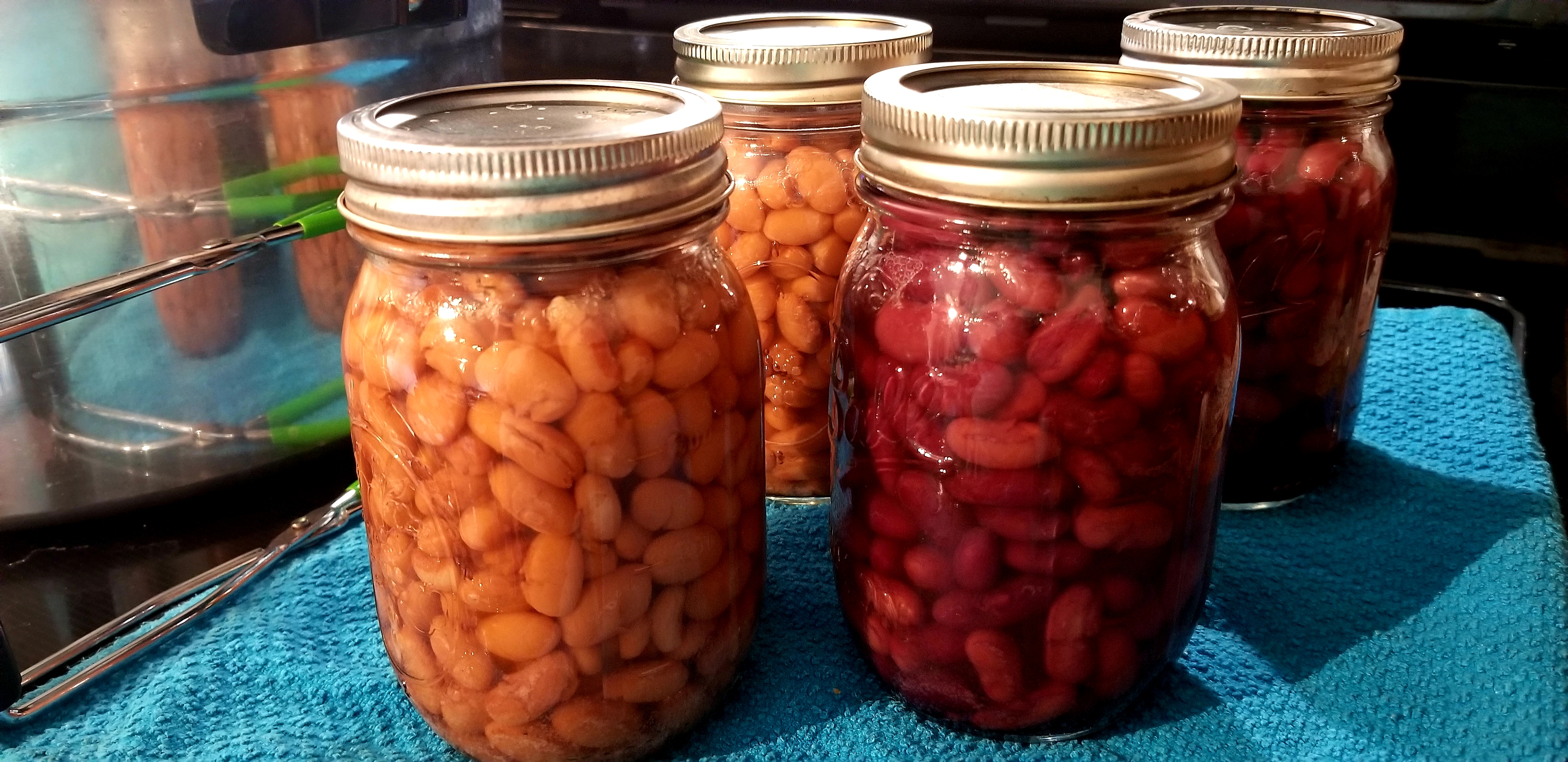 At that point, a portion of the beans were left to completely dry out and the remainder were soaked in water overnight, drained, rinsed, and pressure canned in fresh water, just as green beans are. The dried out beans were “dry canned” in the oven. Apparently this method isn’t approved by the USDA, although folks have done it successfully for decades. Do your own research and use your own judgment on how you preserve your dried beans. Both methods have kept very well in our pantry.