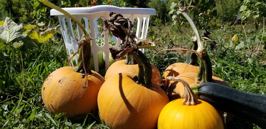 Finally, we can talk about our pumpkins. These little beauties were a joy to grow, and their blossoms were the backdrop for some amazing native bee photography. They made the silkiest puree I’ve ever tried, as well as some very scrumptious pies. These pumpkins stored well for many months in our cool, dry garage before the last of them were consumed. I’ve saved their seeds and intend to grow some more in 2021. In the recipe, I misspoke and stated that the variety of pumpkins we grew were New England Sugar Pie; the variety was actually Winter Luxury.