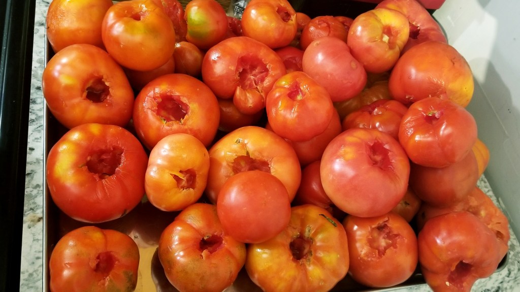 All of our tomato harvest was either eaten fresh or diced and canned.