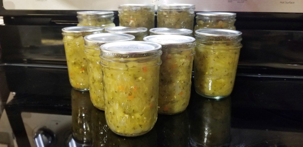 Previously I mentioned that we grew tomatillos for the first time this year. I know some people love them, but for me they are too much hassle for the small amount of product you end up with. Rather than using tomatillos for salsa verde, green tomatoes are a much simpler and plentiful option. The flavor is very similar, and our family loves this salsa! Before our first fall frost, I gathered every tomato I could find in the garden, green or otherwise. The green tomatoes were what I used to make this tasty salsa. I also included some hot peppers that we grew in our garden, although they weren’t from the seeds I’d started. All of my peppers sprouted, graduated to the cold frame, and hardened off well, but after I planted them, they every one died except about 4 cayenne pepper plants. I need to figure out what I did wrong so I don’t end up buying overpriced pepper plants again.