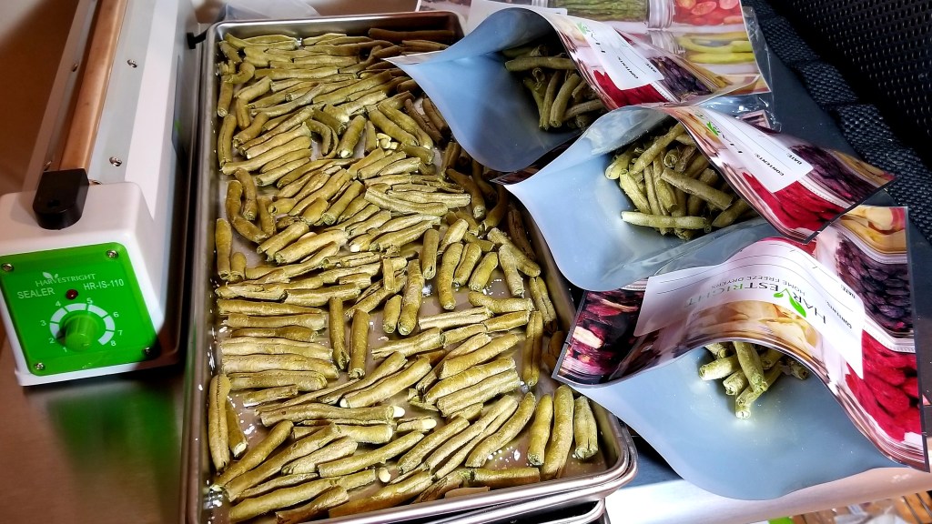 In an effort to offset some of the anxieties surrounding the issue, we decided to purchase a Harvest Right home freeze dryer. It wasn’t a knee jerk decision, as it is quite an investment. Let me tell you this much. This freeze dryer has completely upped my food preservation game in ways I never dreamed of. Not only can I preserve my garden harvest in new and exciting ways, but the foods retain more of their vitamins and minerals than through freezing, canning, or dehydrating. Not to mention the long term storage capability without refrigeration required. Garden veggies and fresh fruit are just the beginning of what this machine can preserve. I’ve also preserved sour cream, meatloaf, and even ice cream sandwiches. Not that I’m growing ice cream sandwiches in my garden or anything…